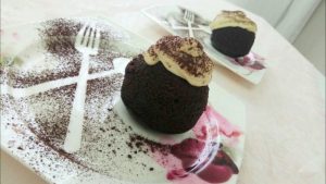 Üzerilerine yarım su bardağı su, 2 tatlı kaşığı kahve ve 3 tatlı kaşığı toz şeker ile hazırlanan sosu dökerek ıslatın.Vanilya ve labne peyniri hariç bütün malzemeleri kıvam alana kadar pişirin. Pişince soğumaya bırakın. ( Sıcakken labne peynirini koyarsanız eğer peynir kesilebilir dikkat edin.) Soğuyunca labne peyniri ve vanilyayla güzelce çırpın.Buzdolabında ortalama 1-2 saat kadar bekletip keklerin üzerilerine sıkın.
