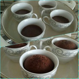 Kek hamurunu tereyağı ile yağlanan fincanlara eşit olacak şekilde içerisine dökün.Fincanları derin bir tencere içerisine dizip fincanların yarısına gelecek biçimde tencereyi kaynar su ile doldurun. ( Su kaynar olmazsa pişirme süresi uzuyor.)